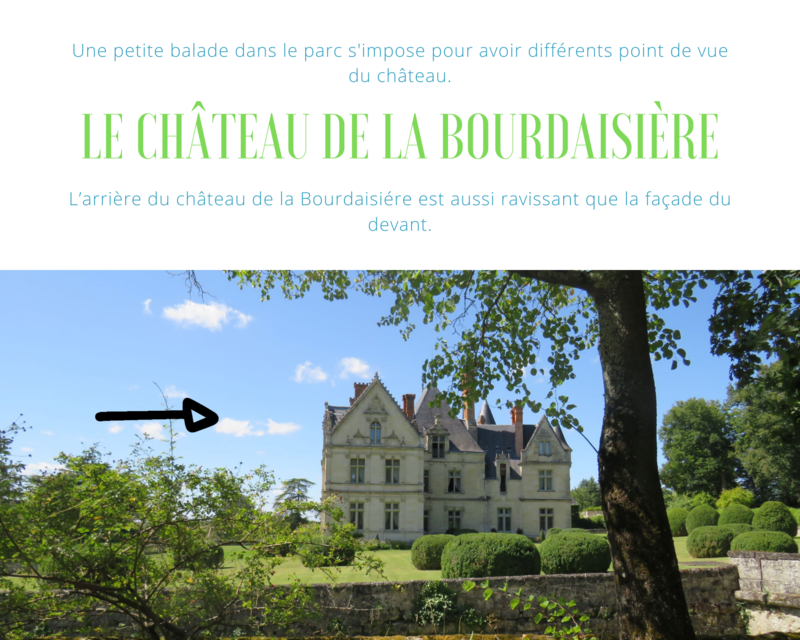 D’abord pour son histoire qui n’est pas des plus paisible. Il fut détruit par le Duc de Choiseul par simple mesquinerie ( il ne voulait pas que son ennemi le duc d’Aiguillon qui était propriétaire du château de Véretz juste en face ne puisse avoir une aussi belle vue que celle du château de la Bourdaisiére) et à partir de la fin du XVIII ème siècle Armand Joseph Dubernad (armateur)commence la reconstruction du château qui se poursuit, au XIXe siècle, avec le baron Joseph-Jérôme-Hilaire Angellier (1778-1857 ; polytechnicien, préfet, pédagogue ; suivi de son fils Gustave-Louis-Charles Angellier) qui décide de reconstruire le château dans un style néo-renaissance.