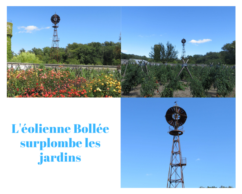 N’hésitez pas à parlez avec les jardiniers, ils sont vraiment sympathiques et pas avares de conseils sur les légumes et les Dahlias. Et puis il y a l’éolienne Bollée mise au point par Ernest-Sylvain Bollée (1814-1891) pour le pompage et l’élévation de l’eau qui est vraiment impressionnante sous le ciel bleu azur.